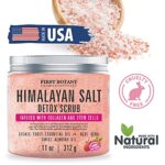 - THE BEST EXFOLIATING EXPERIENCE: First Botany Himalayan Salt Body Scrub / Facial Exfoliator serves as a body scrub, facial scrub, hand scrub or foot scrub! Himalayan Sweet Almond & Lychee Crystal Salt Body Wash /Scrub comes with a high quality Himalayan salt with its maximum nutrient profile including calcium, magnesium, potassium, copper & iron; no harmful chemicals.